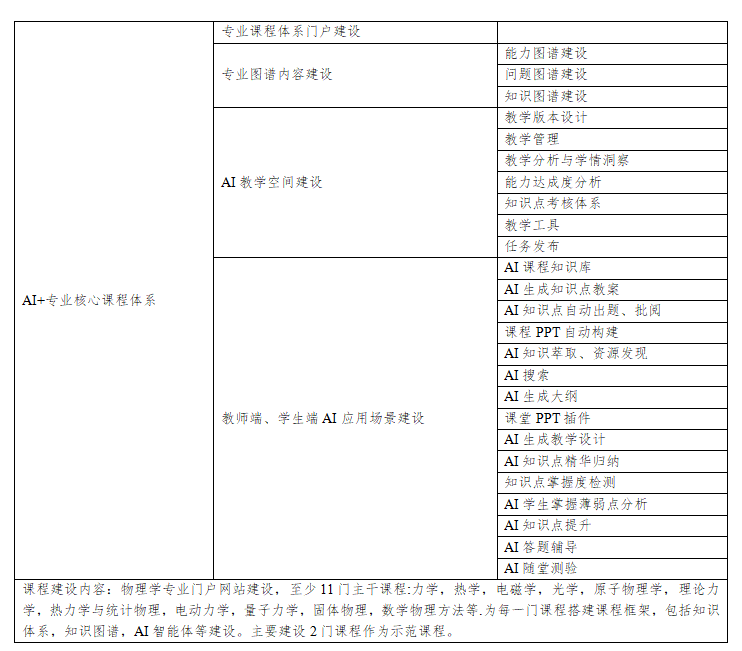 项目概况:为主动顺应人工智能产业蓬勃发展的时代趋势,进一步优化物理学院专业教学体系、提升人才培养质量与核心竞争力,本项目计划聚焦“AI + 物理” 专业核心课程体系建设相关模块展开系统性工作,具体内容包括但不限于: