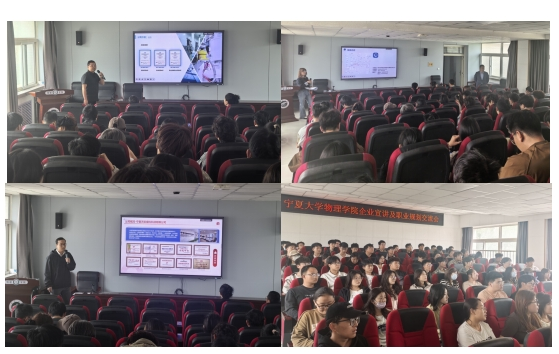 本次交流会特别邀请到宁夏和佳半导体有限公司研发总监吴建科、宁夏中耀环能科技有限公司办公室主任田薇迪、宁夏天凯银科科技有限公司事业部经理王一成三位嘉宾作专题分享。宣讲过程中,三位嘉宾全面解读了各企业的发展理念、招聘需求及岗位能力要求,深入分享了职业发展中的经验技巧与能力提升路径。他们鼓励同学们立足专业所学,主动在课程学习、学科竞赛中锤炼核心技能,秉持拼搏进取的精神,为未来职业发展积累实力;同时提醒大家,职业规划既要脚踏实地、夯实专业基础,也要胸怀理想、科学谋划,找准自身定位,把握发展机遇。