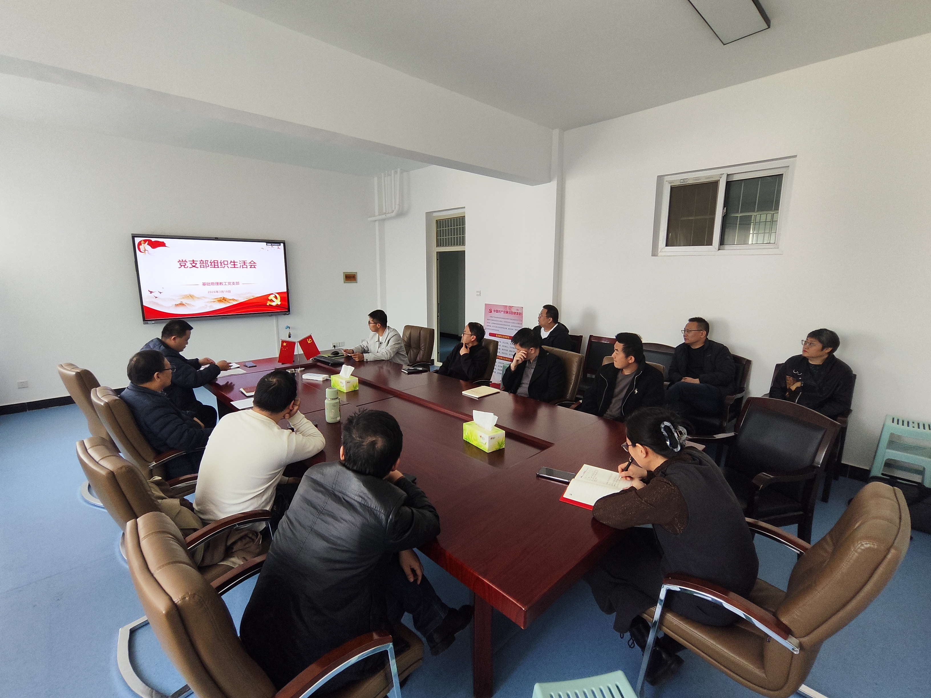 2026年3月17日,物理学院各基层党支部分别召开2025年度组织生活会暨民主评议党员会议,学院党总支领导列席指导。